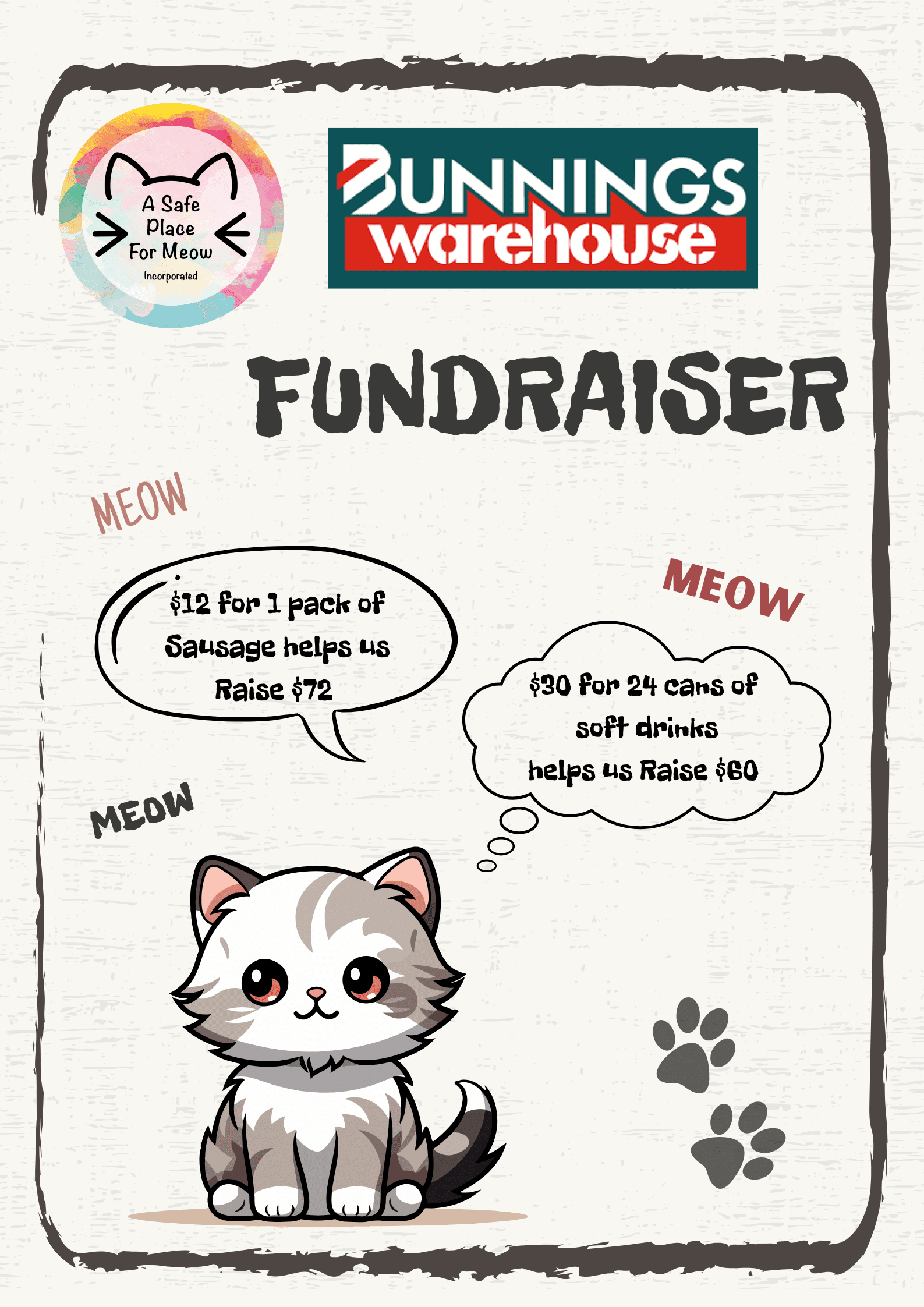 Help us purchase supplies for our Bunnings Fundraiser, to raise greater funds to continue our rescuing efforts.